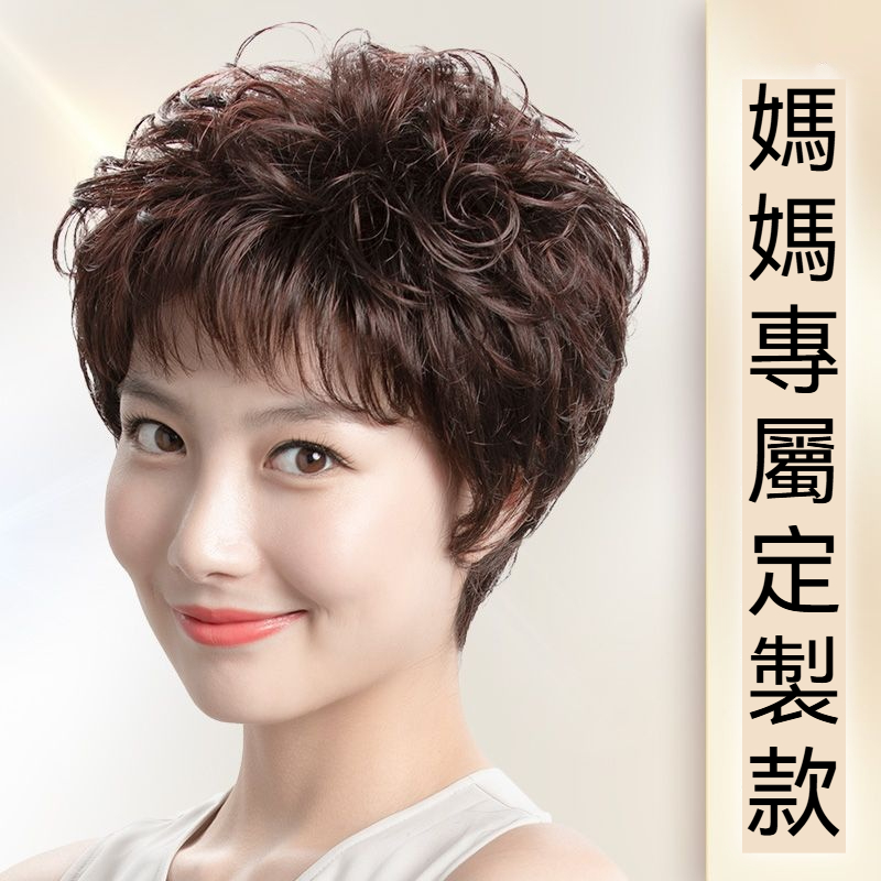 2026短款真髮絲假髮 中老年媽媽專屬定制款真頭髮超自然高檔全真人髮光頭頭套